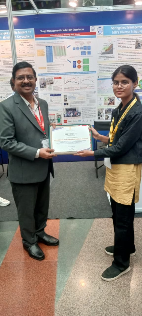 The award, carrying a cash prize of ₹1 lakh, was presented by Union Minister of Jal Shakti, Shri C.R. Patil, in recognition of her innovative project focused on tackling water pollution.